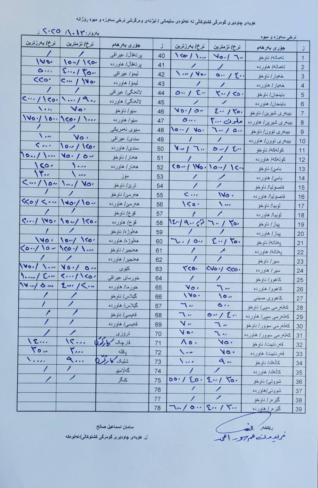 نرخی میوەو سەوزەی ئەمڕۆ ( سێ شەمە) بەرواری14-10-2025ەعەلوەی سلێمانی. .... تێبینی/ ئەم نرخانە تە...